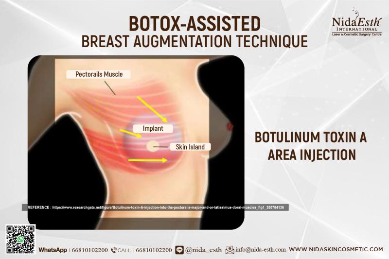 หรือ “การเสริมหน้าอกร่วมกับการใช้สารคลายกล้ามเนื้อ” เพื่อช่วยลดความเจ็บหลังผ่าตัดและให้หน้าอกเข้าที่อย่างรวดเร็วโดยไม่กระทบต่อความเป็นธรรมชาติของทรงหน้าอก