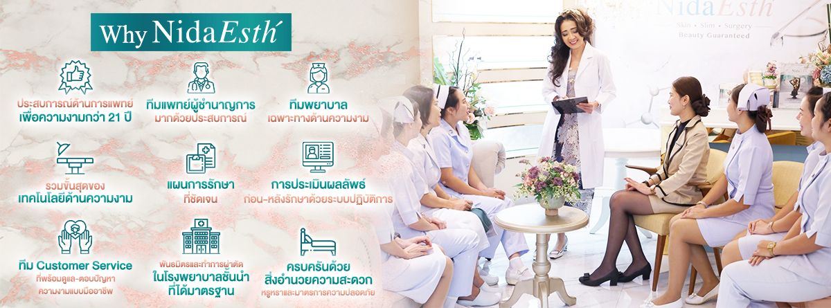 ด้วยเทคโนโลยีเลเซอร์ด้านรูปร่างกว่า 8 ชนิด ที่ได้มาตรฐานระดับโลก US FDA หลายหลายมากมายที่สุดในประเทศไทยทำให้ Nida Esth’ เป็นศูนย์การแพทย์ด้านการสลายไขมันเฉพาะจุด กระชับจัดกรอบรูปร่างที่ดีที่สุดในปัจจุบัน
